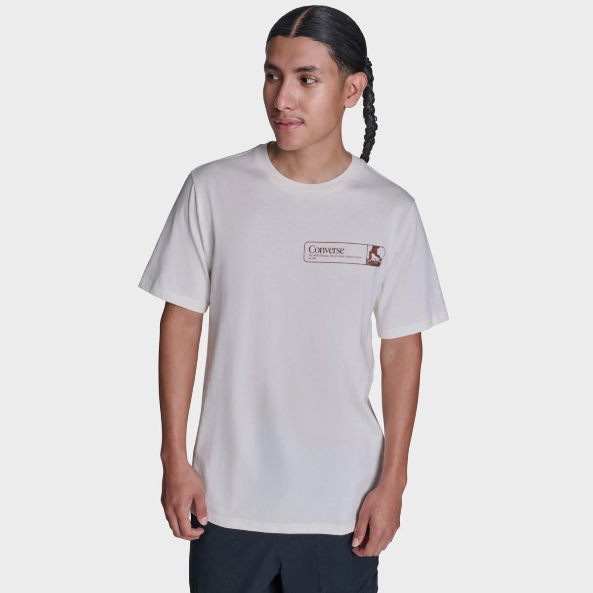 Чоловіча футболка Converse — класична модель із бавовняного трикотажу з фірмовим логотипом Converse у теплому кремово-білому тоні Egret.