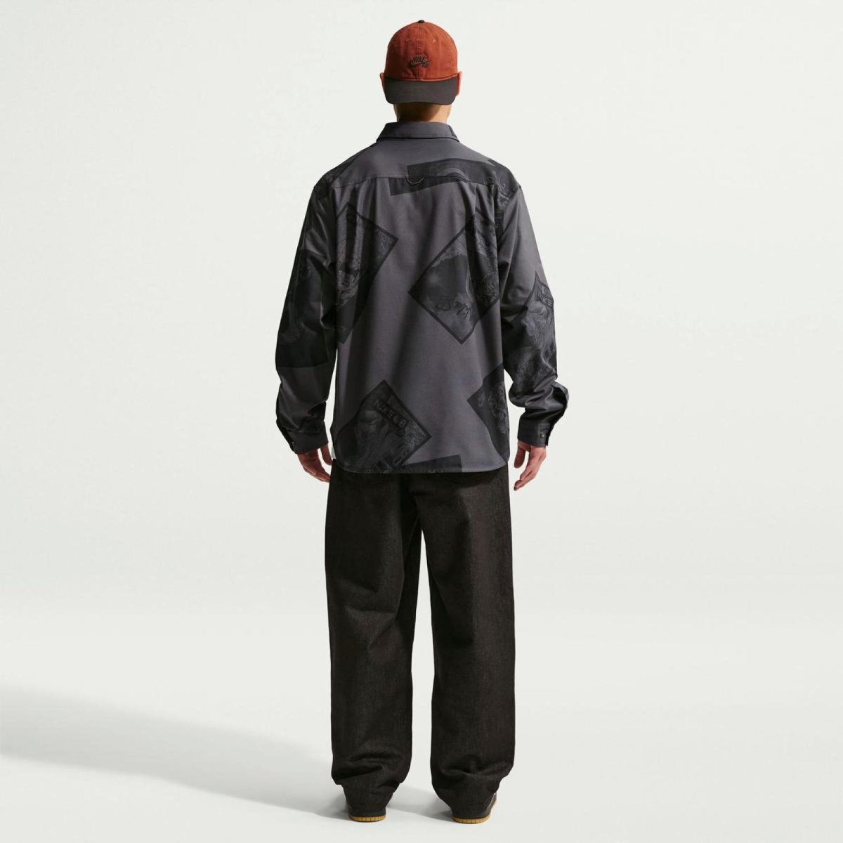 Чоловіча сорочка з довгим рукавом Nike SB Miss You — колекційна модель лінійки Nike Skateboarding у темно-сірому антрацитовому тоні. Матеріал на основі бавовни та вільний крій відповідають естетиці скейтерської культури.
