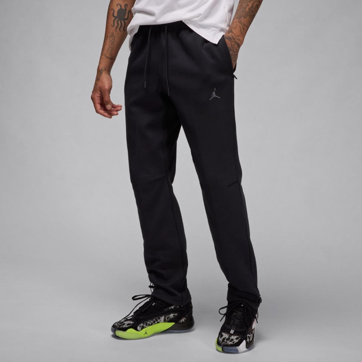 Гладкі як усередині, так і зовні, ці штани забезпечують вам багато тепла та комфорту. Крім того, їх вологовідвідна тканина допомагає вам залишатися сухими та почуватися комфортно.ПеревагиТехнологія Nike Dri-FIT відводить піт від шкіри, прискорюючи його випаровування, допомагаючи вам залишатися сухими та почуватися комфортно.Еластичний пояс із матовим шнурком допоможе вам точно підігнати посадку.Бічні та задні кишені на блискавці дозволяють безпечно зберігати телефон, гаманець та ключі.Зав'язки на щиколотці дозволяють відрегулювати свій стиль, щоб продемонструвати улюблену пару кросівок.Подробиці про продуктОсновна частина: 69% бавовна/31% поліестер.