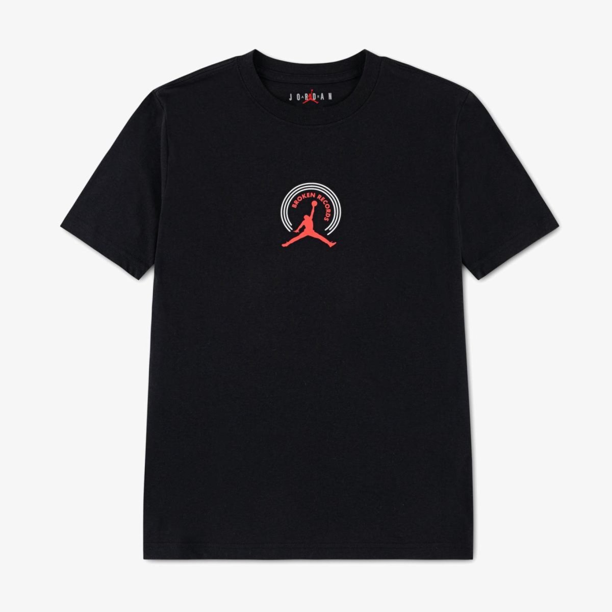 Дитяча футболка JORDAN BROKEN RECORDS — графічна футболка для підлітків у чорному кольорі. Мотиваційний дизайн виконаний на основі гладкого м'якого трикотажу стандартної посадки.