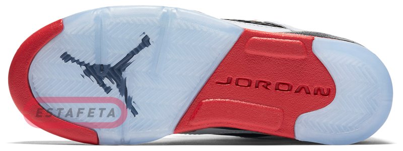 Тинкер Хэтфилд придумал революционный дизайн AIR JORDAN 5 с новой полупрозрачной резиновой подошвой, которая придавала кроссовку совершенно уникальный вид, и удобными фиксаторами шнурков lacelocks. Инспирацией для дизайна кроссовка послужил истребитель времен Второй мировой войныMustang с аэрографией в виде акульих зубов на фюзеляже.