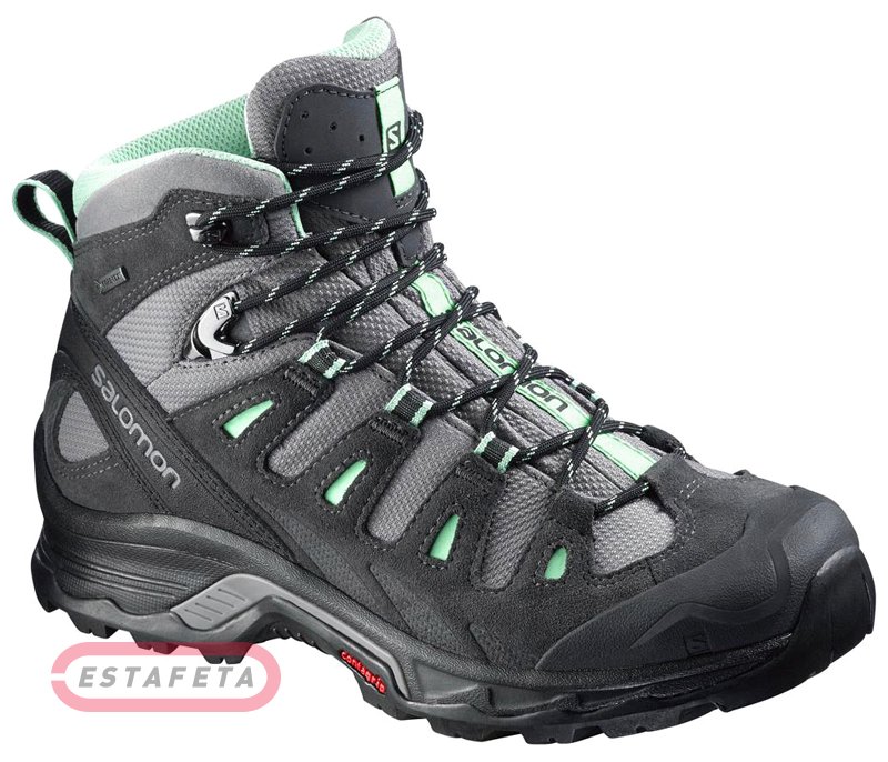 Женские ботинки Salomon QUEST PRIME GTX® для походов в горы, бездорожным тропам и активного отдыха. Ботинки сравнительно легкие, весом всего 570 грам. Такие ботинки обладают отличными амортизационными свойствами, хорошо защищают и поддерживают стопы. Верхняя часть ботинок изготовлена из натуральной замши и сетчатого нейлонового материала, носок и пятка защищены гибкой поддерживающей накладкой из полиуретана. Внутри ботинок есть сетчатая подкладка и мембрана Gore-Tex Performance Comfort Footwear. Анатомическая стелька Ortholite с антибактериальной функцией защищает от возникновения неприятного запаха и размножения вредных бактерий, а также стелька отлично поддерживает естественное положение стипы. Подошва у этой модели сделана по технологии Advanced Chassis, состоит из тонкого супинатора, промежуточного амортизирующего слоя из EVA-пенки, дополнительной поддерживающей вставки в пяточной зоне из гибкого термополиуретана, а также слоя износоустойчивой подметки Contagrip. Профессиональные ботинки Salomon QUEST PRIME GTX® выглядят стильно и защищают ваши ноги в любую погоду.