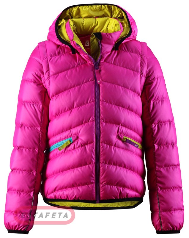 Детский пуховик Reima Merope предназначен для повседневного использования в холодное время года. Верхний материал – полиэстер. Внутри натуральный пух и перо, которые славятся своей теплоизоляционной функцией. Съемный капюшон и манжеты защитят вашего ребенка от переохлаждения. Эта модель интересна тем, что рукава можно отстегнуть при необходимости. Таким образом куртка превращается в жилет, который можно применять в более теплое время года. По бокам есть два кармана для нужных вещей, которые застегиваются на молнию. Куртку легко стирать в машинке, предварительно вывернув изделие наизнанку. Она не теряет внешний вид и первоначальные качества. Такая курточка обрадует каждую девочку.