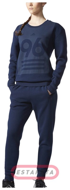 Супермягкий на ощупь флис, модельный покрой в стиле 90-х и оригинальный дизайн – главные отличительные свойства данного изделия. Тренировочный костюм для девушек, которые предпочитают спортивность и стильность, поможет вам обеспечить качество и продуктивность ежедневных тренировок. Спортивный костюм Adidas CREWNECK TRACK SUIT состоит из джемпера с длинными рукавами и прямых брюк. Круглый вырез для шеи, обработанный эластичной тканью, гарантирует оптимальную посадку на фигуру. Изделие украшено крупным принтом, изображающим число 96. Широкий покрой брюк, слегка зауженных книзу, предполагает возможность совершать широкую амплитуду движений при тренингах. Присобранные в верхней части на пояс со встроченной резинкой, они прекрасно удерживаются на талии, не соскальзывая и не перекручиваясь во время тренировок.