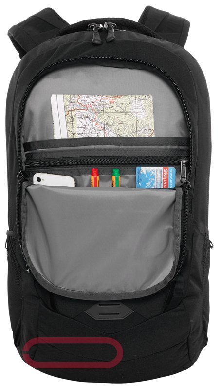 Сравнительно небольшой рюкзак объемом в 24 литра, успешно применяемый для передвижений по городским улицам, м также допускающий возможность использования для поездок за город, на пикник, или для краткосрочных путешествий. Применяемое для изготовления рюкзака The North Face VAULT TNF BLACK/FIERY сырье дает возможность надежно хранить вещи внутри, не опасаясь попадания дождя и снега. Один общий отдел внутри изделия дополняется карманом для девайсов, и прочими кармашками поменьше, где можно расположить документы, канцелярию, ценные предметы и другие необходимые в дороге вещи. Сам рюкзак, а также внешний крупный карман застегиваются при помощи больших зипперов, имеющих двухстроннее направление. Спинка рюкзака с сетчатой тканью не предполагает появления влаги и пота на спине спортсмена, а регулируемые лямки можно подогнать под нужный размер так, чтобы рюкзак минимально напрягал позвоночник.