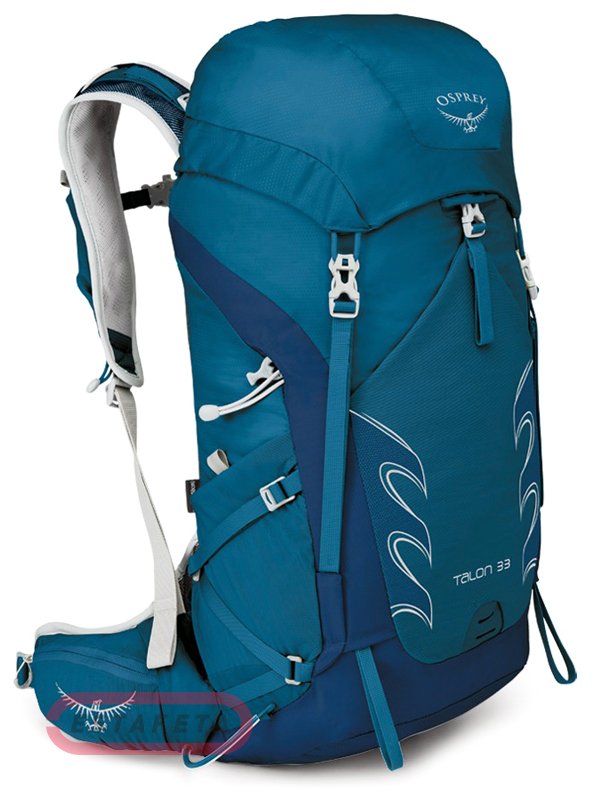 Модель Osprey Talon 33 Ultramarine Blue совместима с питьевыми системами Hydraulics™ и чехлами от дождя Osprey Ultralight High Vis.
