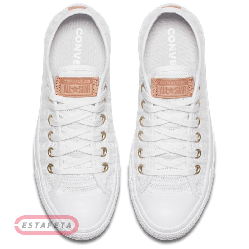 Кеды Converse CTAS OX – летний вариант низкопрофильного легендарного силуэта Chuck Taylor All-Stars. Верхняя часть из сетчатого кружевного материала имеет игривый рисунок herringbone «елочка» для идеального летнего вида. Классический резиновый сайдинг и бампер. Внутренняя стелька OrthoLite, изготовленная из мягкого вспененного материала, обеспечивает правильное положение ступни, а пористый материал стельки создает дополнительную пружинящую амортизацию. Подошва из вулканизированной резины устойчива к истиранию, что гарантирует длительный срок эксплуатации, и обеспечивает отличное сцепление. Кожаные патчи на язычке и заднике модели. Лого Converse All Star.