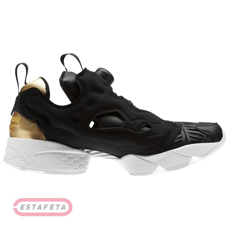 Созданный более 25 лет назад, INSTAPUMP FURY от Reebok нацелился на переработку эстетики дизайна для беговой обуви - в результате появился знаковый вневременной продукт с идеальной посадкой и новым уровнем комфорта за счет использования технологии Pump. Технология Pump основана на индивидуализированной подкачке воздуха внутрь подошвы. Разработчики технологии справедливо полагали, что спортсменам нужна персонализированная подстройка спортивной обуви с учетом индивидуальных особенностей строения стопы. Суть технологии в том, что в тех местах кроссовка, где обычно возникает несоответствие ноги и самой обуви, помещаются регулируемые воздушные камеры. Подкачка воздуха осуществляется с помощью мини насоса, выведенного на поверхность кроссовка в виде выпуклой объемной кнопки. По системе воздуховодов сжатый воздух распределяется по подошве и создает зоны с различным давлением, которые возможно персонально отрегулировать, настроив наиболее удобную посадку кроссовка. Второй механизм подкачки дополнительно фиксирует лодыжку по всей внутренней поверхности кроссовка. Новая версия легендарной модели INSTAPUMP FURY становится ключевым элементом модного образа и демонстрирует уникальный дизайн, функционал и практичность. Верх выполнен из натуральной кожи с лазерной перфорацией в виде лепестков. Задник оформлен вставкой из кожи цвета золотистый металлик. Классический низкий дизайн для свободы движений в области щиколотки. Внутренний слой кроссовка обеспечивает высокий уровень комфорта, плотно и мягко облегая ногу. Мягкая стелька, окантовка и подкладка язычка обеспечивают дополнительный комфорт. Жесткий задник, изготовленный термопластичного полиуретана, надежно фиксирует пятку. Легкая промежуточная подошва, выполненная из пеноматериала двойной плотности с технологией Graphlite, снижает воздействие ударных нагрузок на суставы, поглощая энергию удара, и гарантирует отзывчивую и гибкую амортизацию без утяжеления. Технология 3D Ultralite позволяет совместить подошву и подметку в единую деталь – их материалы соединяются на молекулярном уровне, что снижает вес обуви на 10 – 15%, при этом сохраняются и улучшаются амортизационные свойства и гибкость, что обеспечивает стабильный контакт с поверхностью и плавный, естественный цикл походки. Текстурированный износостойкий протектор подошвы из карбонизированной резины CRTek гарантирует оптимальное сцепление с поверхностью. Петли на заднике и язычке предусмотрены для удобства обувания. Лого Reebok на заднике модели.