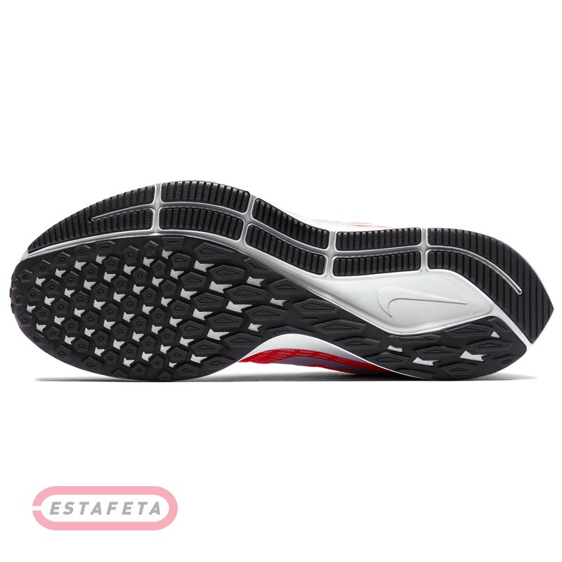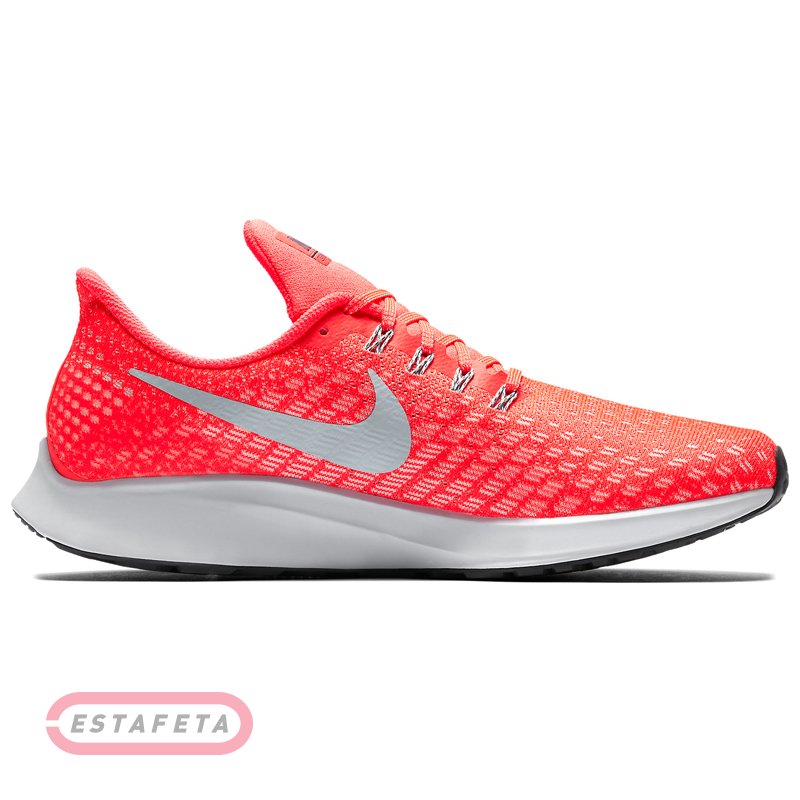 Кроссовки для бега Nike AIR ZOOM PEGASUS 35 – 35-е обновление в легендарной линейке беговых кроссовок NIKE AIR ZOOM PEGASUS, сочетающее в себе оптимизированую амортизацию и сцепление с поверхностью, а также улучшенную воздухопроницаемость кроссовок. Модернизация включает в себя зубчатый язык для более легкого обувания, новое размещение нижней проушины шнуровки, чтобы обеспечить большую гибкость в носочной области, переработанный задник для повышения комфорта, скошенную для лучшего переката пяточную область подошвы и полноразмерный блок Nike Zoom. В женской модели Air Zoom Pegasus 35 использована более мягкая пена Cushlon. Прочная сетчатая структура материала верха Flymesh обеспечивает прекрасную поддержку стопы и максимальный воздухообмен. Применена технология Dynamic Flywire, которая позволяет индивидуально отрегулировать посадку обуви, обеспечивая идеальную зональную поддержку стопы. Внутренняя поверхность кроссовка выполнена из текстиля, который дополняет чувство комфорта и удобной посадки кроссовка. Усиленный задник отвечает за поддержку и надежную фиксацию пятки. Подошва выполнена из пеноматериала Cushlon, значительно снижающего вес кроссовка, и обеспечивающего мягкую амортизацию. Блок Nike Zoom Air гарантирует отзывчивую высокоскоростную амортизацию. Прочный износостойкий протектор разбит на секции с различным рисунком, такое сочетание позволяет добиться максимального сцепления с поверхностью. Светоотражающая деталлизация. Перепад от пятки к носку: 10 мм. Вес: 281 г (men's size 9).