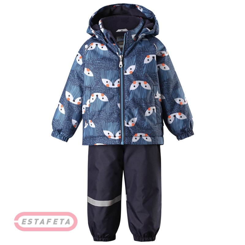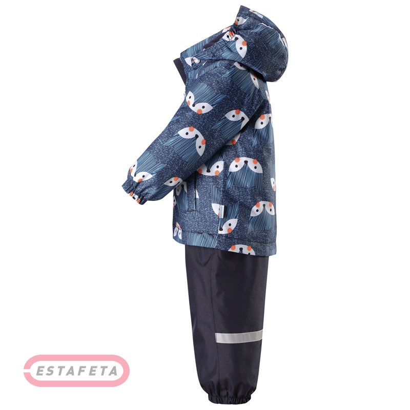 Зимний детский комплект (куртка+брюки) Lassie с веселым принтом по всей поверхности и функциональными карманами для мелочей – незаменимая вещь для маленьких искателей приключений. Рассчитанный на суровые условия холодного сезона костюм станет идеальным решением для активных игр, прогулок и продолжительного времяпровождения на улице осенью и зимой. Верх выполнен из сверхпрочного материала оксфорд, обладающего влагоотталкивающей пропиткой. Куртка оснащена практичным, регулируемым капюшоном, герметично проклеенными стратегическими швами, эластичными резиночками на манжетах рукавов и регулируемым подолом. Брюки-полукомбинезон с застежкой на молнии снабжены съемными штрипками и подтяжками, позволяющими надежно зафиксировать модель на фигуре и оптимизировать посадку. Множество вместительных карманов с застежками вызовет восторг у малышей, которые привыкли всегда носить с собой свои ценные детские находки. Отражающие свет детали делают силуэт непоседы визуально заметнее в темноте.