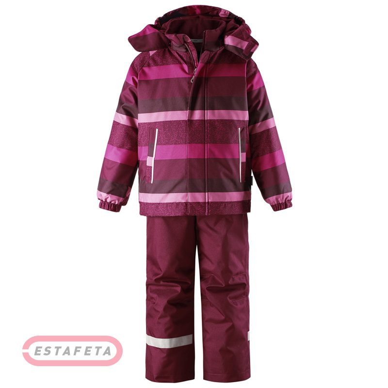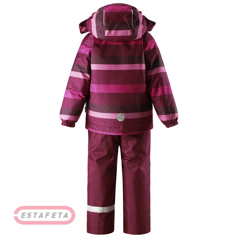 Универсальный детский комплект (куртка+брюки) Reima LASSIE Casual с утеплителем, светоотражающими элементами и съемным капюшоном – практичная модель, отлично подходящая как для ежедневных продолжительных прогулок, так и для зимних загородных приключений. Костюм состоит из классической курточки с карманами и штанов, дополненных эластичными подтяжками. Модель разработана из сверхпрочного, высокотехнологичного материала с полиуретановой пропиткой, которая защищает от влаги и холода. Стандартный, прямой покрой гарантирует анатомическую, расслабленную посадку без малейшего намека на стеснение движений. Куртка дополнена эластичными манжетами на рукавах, штормовым клапаном поверх фронтальной молнии, дышащей подкладкой и высоким воротом с отделкой из мягкого флиса. Снегозащитные гетры на брючинах препятствуют налипанию снега под одежду. Яркий, оригинальный дизайн с ультрамодным принтом в полоску по всей поверхности куртки делает силуэт запоминающимся. Для хранения важных детских находок предусмотрено обилие функциональных карманов с застежками.