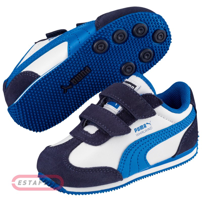 Кроссовки Puma Whirlwind – ретро-наследие, легендарная модель 80-х. Оригинал, ставший моментально безусловным хитом, обладал такими отличительными особенностями, как агрессивный зубчатый узор подошвы и классический верх нейлон / замша. Детская версия Puma Whirlwind L V Inf выходит с верхом из комбинации классических материалов – кожи и замши. Носочная часть кроссовка защищена классической накладкой T-finger из замши. Удобная двойная застежка-липучка обеспечивает оптимальную фиксацию и посадку. Анатомическая стелька обеспечивает правильное расположение стопы и дополнительную амортизацию. Промежуточная подошва из пеноматериала EVA (Ethyl Vinyl Acetate) гарантирует оптимальную амортизацию, и, как следствие, снижает нагрузки на ноги. Подметка выполнена из износостойкой резины, что обеспечивает отличное сцепление и препятствует истиранию об асфальт. Ретро брендинг PUMA Archive Logo на язычке и внешней боковой стороне модели.