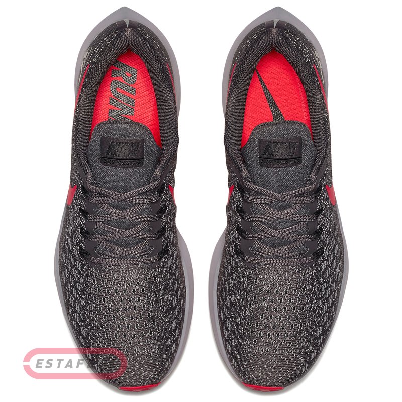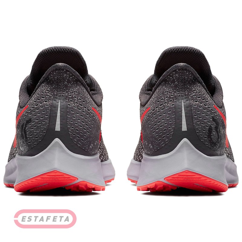 Кроссовки для бега Nike AIR ZOOM PEGASUS 35 – 35-е обновление в легендарной линейке беговых кроссовок NIKE AIR ZOOM PEGASUS, сочетающее в себе оптимизированую амортизацию и сцепление с поверхностью, а также улучшенную воздухопроницаемость кроссовок. Модернизация включает в себя зубчатый язык для более легкого обувания, новое размещение нижней проушины шнуровки, чтобы обеспечить большую гибкость в носочной области, переработанный задник для повышения комфорта, скошенную для лучшего переката пяточную область подошвы и полноразмерный блок Nike Zoom. В женской модели Air Zoom Pegasus 35 использована более мягкая пена Cushlon. Прочная сетчатая структура материала верха Flymesh обеспечивает прекрасную поддержку стопы и максимальный воздухообмен. Применена технология Dynamic Flywire, которая позволяет индивидуально отрегулировать посадку обуви, обеспечивая идеальную зональную поддержку стопы. Внутренняя поверхность кроссовка выполнена из текстиля, который дополняет чувство комфорта и удобной посадки кроссовка. Усиленный задник отвечает за поддержку и надежную фиксацию пятки. Подошва выполнена из пеноматериала Cushlon, значительно снижающего вес кроссовка, и обеспечивающего мягкую амортизацию. Блок Nike Zoom Air гарантирует отзывчивую высокоскоростную амортизацию. Прочный износостойкий протектор разбит на секции с различным рисунком, такое сочетание позволяет добиться максимального сцепления с поверхностью. Светоотражающая деталлизация. Перепад от пятки к носку: 10 мм. Вес: 281 г (men's size 9).