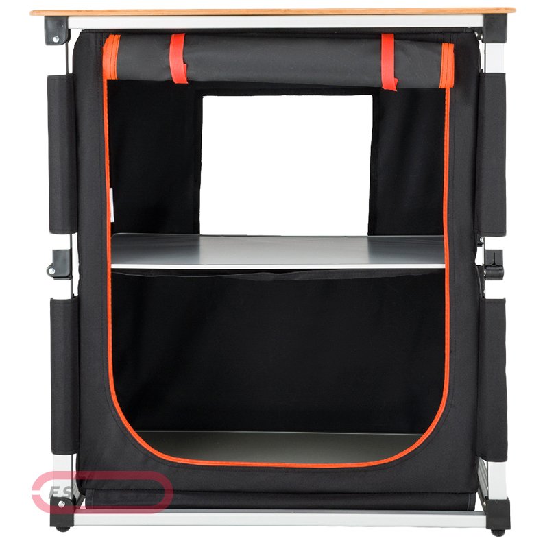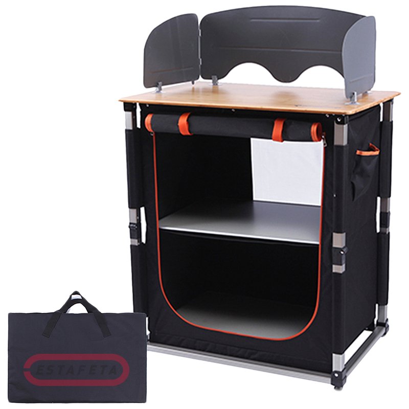 Складная кухня KingCamp BAMBOO COOKING TABLE можно использовать как кухню на открытом воздухе, когда семьи отправляются в поход. Он имеет систему быстрого открывания и складывания, не требует сборки. Ветрозащитная доска прекрасно подходят для приготовления пищи на газовой плите. И вы можете мыть фрукты и руки в тазу, резать овощи на рабочем столе. Этот складной кухонный многофункциональный кухонный стол из нержавеющей стали сочетает в себе шкафчик, место для барбекю, рабочую зону, раковину и удлинитель, что может сделать кемпинг очень комфортным.