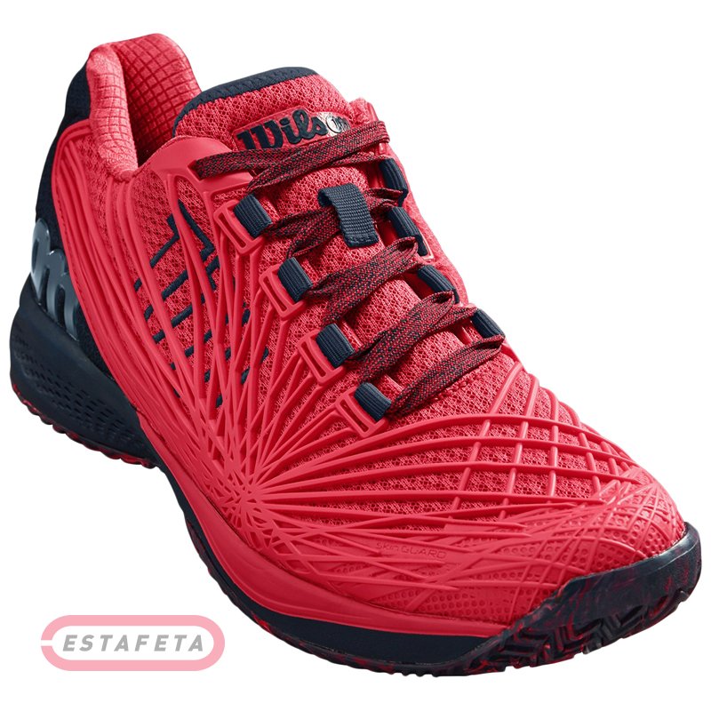 Юниорские кроссовки для тенниса Wilson KAOS 2.0 PINK/BERRY SS19 – высокотехнологичное предложение с отличным набором функционала, созданное для агрессивных игроков, ищущих скорость и комфорт. Инновационные технологии, разработанные командой Wilson, призваны обеспечить динамическую поддержку и экстра стабильность для игроков с самыми высокими требованиями. В модели используются технологии SkinGuard и ENDOFIT для усиления поддержки быстрых боковых движений. Технология ENDOFIT имеет бесшовную внутреннюю конструкцию носок и предлагает персонализированную посадку для повышения стабильности и комфорта. Сетчатый материал верха свободно пропускает воздух внутрь, благодаря чему стопы спортсмена меньше потеют даже при экстремальных нагрузках. Полимерный 3-D рисунок на поверхности кроссовка помимо эстетики несет еще чисто утилитарную функцию, упрочняя и защищая верх кроссовка от истирания. Технологии SkinGuard и 2D-FS объединяются для обеспечения дополнительной поддержки, стабильности и долговечности. Эта быстрая и агрессивная модель является отличным выбором для серьезного профессионального игрока и гарантирует превосходное сцепление с любыми игровыми поверхностями. Специальная конструкция промежуточной подошвы из легких пеноматериалов включает в пяточной области вставку по технологии RDST + , что улучшает амортизацию и возврат энергии для взрывных движений. Внутренняя стелька по технологии 3D HIGH DENSITY Ortholite SOCKLINER дополняет амортизацию и чувство комфорта. Уникальный модифицированный узор на подметке DURALAST гарантирует превосходно сцепление с игровыми поверхностями и добавляет обуви долговечности. Классическая шнуровка связывает воедино верх кроссовка с полимерным внешним каркасом и помогает отрегулировать посадку. Логотип бренда Wilson.