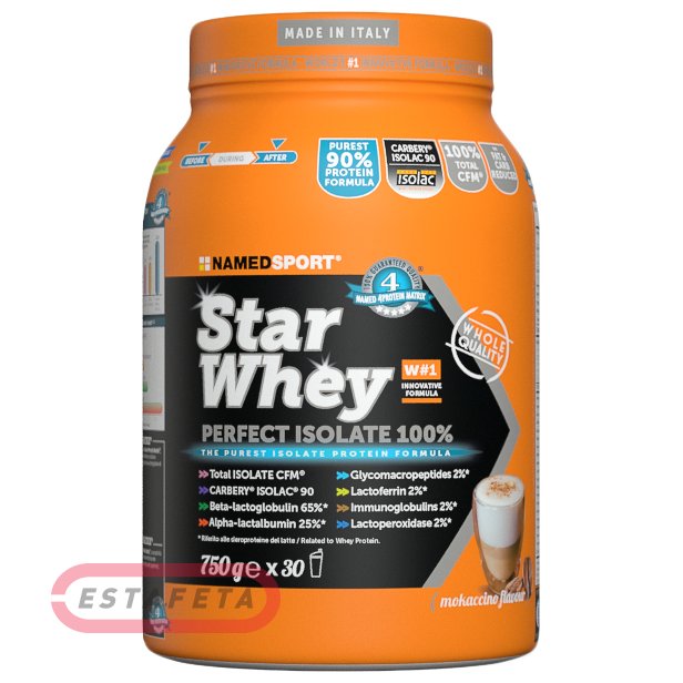 Протеин Namedsport STAR WHEY ISOLATE содержит чистый сывороточный белок чистого качества CARBERY® Isolac 90, полученный методом кросс-поточной микрофильтрации (Cross-Flow-Micro-filteration — CFM ™), которые отличаются непревзойденной степенью чистоты. Конкретный процесс экстракции позволяет получить продукт исключительного качества, достигая наивысшей биологической ценности (119) и наиболее полного профиля аминокислот. Этот протеин обогащен эксклюзивной запатентованной композицией Named 4 Protein Matrix®, основанной на Protease, Fenugreek Extract и Bovine Colostrum. 100% изолят сывороточного протеина высочайшего качества CARBERY Isolac 90 с витаминами группы B. Эксклюзивная формула, полученная в результате исследования NAMED, Isolate Whey Proteins Isolate была специально разработана для тех, кто ищет высококачественное усвоение белка, быстрое всасывание и снижение потребления жиров и углеводов. Содержит жиры и углеводы. Сниженное потребление жиров и лактозы. Быстрые абсорбционные белки, особенно полезные в после тренировки. Высоко усваиваемая композиция, обогащенная эксклюзивной смесью Named 4 Protein Matrix®. Растворимость при широком диапазоне рН и мощный аминокислотный профиль делают ISOLAC идеальным сырьем для повышения биологической ценности продуктов спортивного питания во всех популярных форматах. Рекомендуется принимать до или после тренировки, предварительно размешав 25 грамм в 200-250 мл. воды или молока.