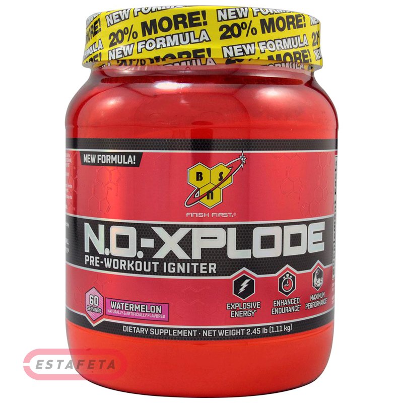 NO Xplode 3.0 - это новая версия предтренировочного комплекса NO-Xplode, с которым вы получите больше пампинга, больше энергии, производительности и выносливости! Выпущенный в конце 2014 года, NO Xplode 3.0 накапливает 10 лет научных достижений и усовершенствований, чтобы преподнести вам самую лучшую формулу предтренировочного комплекса! Myogenic Matrix - это уникальная форула, которая сочетает разные виды креатина для максимизации силы, концентрации и улучшения поглощения питательных веществ. Endura Shot Blend - уменьшает накопление мышечной кислоты во время физических упражнений, способствует росту мышц и оптимизирует уровень тестостерона. N.O. Alpha Fusion Blend - увеличивает поток крови к мышцам, одновременно обеспечивая отличную сердечно-сосудистой и анти-старения поддержку принесенную фолиевой кислоты. Thermic Energy Blend - улучшает психическую бдительность и мотивацию. Shock Composite Blend - содержит мощные дозы витаминов для нон-стоп энергии на тренировке. Применение: смешать 1 порцию (20 грамм) с 350-450 мл жидкости. Принимать за 30 минут до тренировки, лучше всего на пустой желудок.