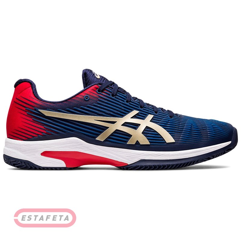 Кроссовки для тенниса Asics SOLUTION SPEED FF CLAY – обновление пермиальной серии SPEED, новая версия выходит с обновленным верхом FLEXION FIT ™, который обеспечивает дополнительную гибкость и устойчивость во время молниеносных игровых движений. Это уменьшает риск возможного натирания стопы, обеспечивая оптимальную поддержку и комфорт. Материал промежуточной подошвы FlyteFoam® с системой DUOMAX® SUPPORT SYSTEM (система подошвы с двойной плотностью, предназначенная для увеличения поддержки и стабильности) является легковесным и гарантирует хорошую реакцию, обеспечивает стабильный комфорт и повышает эффективность движений, в результате достигнут оптимальный баланс амортизации и поддержки стопы. Пеноматериал FlyteFoam® на 55% легче, чем применяемые ранее для конструкции подошвы материалы, его органические волокна после сжатия молниеносно отскакивают в свою первоначальную форму, чтобы обеспечить идеальную амортизацию и молниеносный возврат энергии в следующий шаг. Область носка усилена зональной накладкой PGUARD из синтетического материала, выполненной термосварным методом. На боковых панелях расположены упрочняющие накладки в виде логотипа Asics. Инновационная система амортизации Rearfoot and Forefoot GEL® Cushioning System способствует гашению ударных нагрузок за счет использования специального геля Asics Gel, который располагается в передней и задней части промежуточной подошвы. Использование системы гашения ударных нагрузок Impact Guidance System с направляющей линией Guidance Line, расположенной посередине подошвы, позволяет распределять и эффективно демпфировать нагрузку, действующую на стопу, во всех фазах движения, начиная с момента касания пятки об опорную поверхность до момента отрыва области носка от поверхности. Система Guidance Trusstic интегрирована в конструкцию промежуточной подошвы для повышения эффективности отталкивания, она обеспечивает структурную целостность средней части подошвы и плавный переход с пятки на носок. Внутренний задник P.H.F.® (PERSONALIZED HEEL FIT), состоящий из двух слоев материала с эффектом памяти, отлично стабилизирует и фиксирует пятку. Модель предназначена для игры на глиняных кортах (CLAY) имеет протектор с зигзагами «елочка» и обладает наименьшим скольжением по поверхности.
