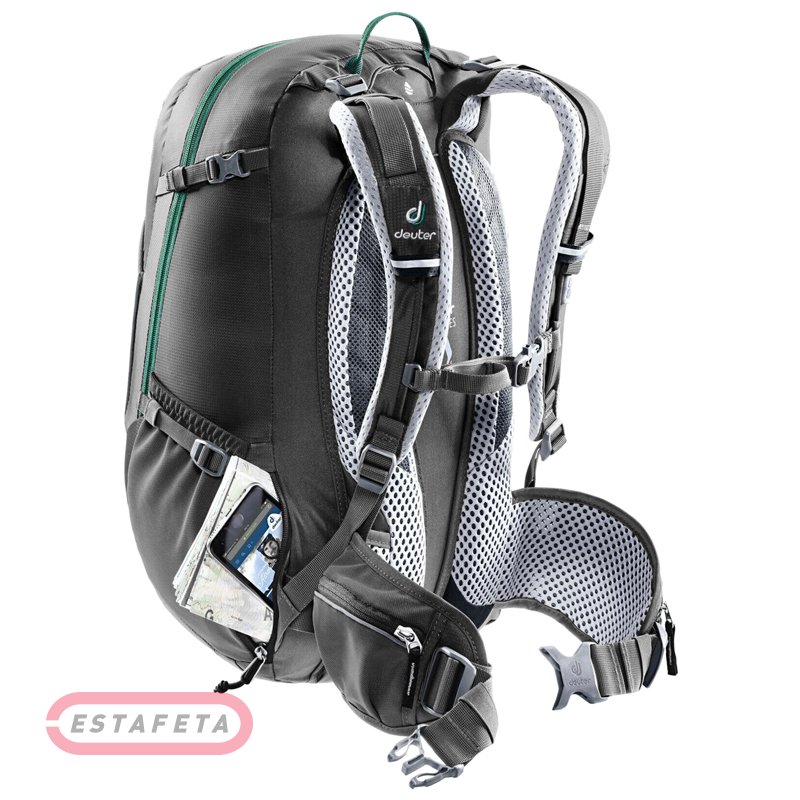 Рюкзак Deuter Trans Alpine 24 создан для велопутешествий. Прочные и износостойкие материалы верха позволяют рюкзаку уверенно выдерживать даже самые суровые условия эксплуатации. Плотные материалы полиамид Deuter-Ripstop 210D PA / полиэстер 600D PES Macro Lite являются идеальным сочетанием высокой прочности и малого веса, материал верха дополнительно обработан полиуретановым покрытием для защиты от влаги и грязи. Большое внутреннее отделение имеет дополнительный доступ снизу, а также его можно разделить на две части внутренней перегородкой. Рюкзак спроектирован на основе надёжной и компактной конструкции DEUTER AIRSTRIPES и обеспечивает максимальную вентиляцию на крутых подъёмах за счёт комфортной системы подвески Aircomfort Flexlite с сетчатой подкладкой на спинке. DEUTER AIRSTRIPES - двухконтурная конструкция из вспененного материала с воздушным каналом посередине и сетчатым материалом Wide AirMesh в качестве подкладки; уменьшенная площадь контакта со спиной создает лучшую вентиляцию, а вес рюкзака расположен максимально близко к телу, что способствует превосходной устойчивости велосипедиста, надёжное крепление рюкзака на спине – даже на бездорожье. Поясной ремень с карманами на молнии обеспечивает ровную и стабильную посадку на теле. Наличие поясного ремня позволяет перенести на поясницу и бёдра до половины веса рюкзака, разгружая плечи и позвоночник. Поясная система VariFlex с подвижными набедренными крыльями равномерно распределяет нагрузку и обеспечивает свободу движений, снижает усталость. Два прочных стержня из стеклопластика и регулировочные стропы на набедренных крыльях позволяют точно контролировать груз, даже если вы двигаетесь по неровному рельефу. Эргономичные плечевые лямки со сглаженными мягкими краями, стабилизирующие ремни на лямках. Регулируемая грудная стяжка. Дополнительный доступ на молнии в основное отделение снизу. Внутренняя перегородка на молнии позволяет разделить основное отделение на два. Надежный боковой карман на молнии для смартфона или карты. Эластичные боковые карманы, эластичный карман с фронтальной стороны. Большой передний карман на молнии с органайзером и фиксатором для ключей. Крепление на лямке для солнцезащитных очков. Накидка от дождя с петлей для сигнального фонарика. Рюкзак совместим с питьевой системой. Съемная сидушка в спинке. Держатель для шлема. Отсек для велонасоса. Отделение для велоинструментов. Светоотражающие элементы со всех сторон. Объем: 24 литра. Габариты: 50 x 24 x 20 см. Вес: 1,15 кг. Логотип Deuter.