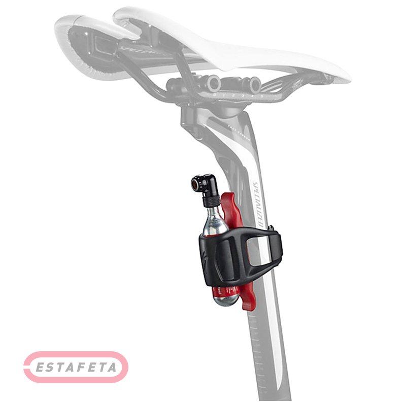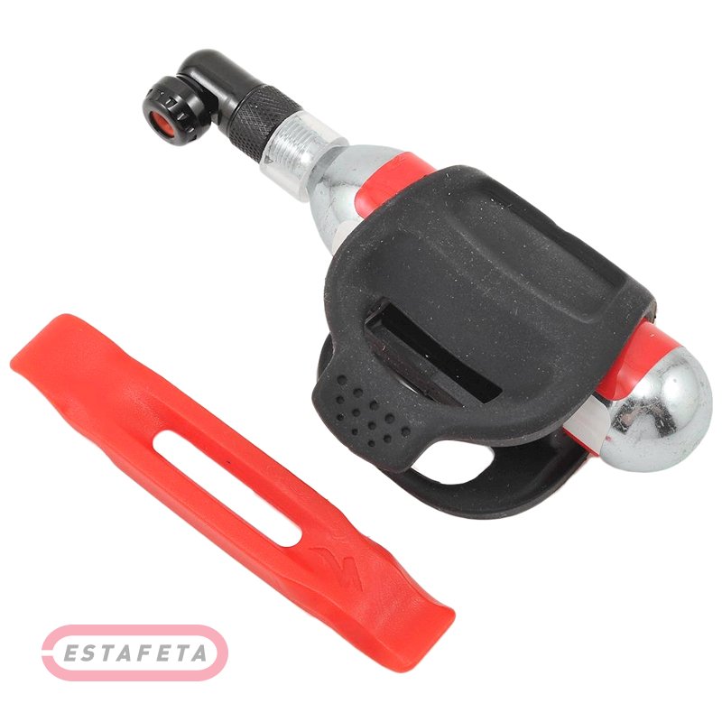 Ремокомплект для спущенной шины 26" и 29". Крепится на подседельный штырь. Силиконовый корпус вмещает картридж 25 г, головку под углом 90 градусов и двусторонний рычаг шины. Пластиковая передняя клипса удерживает два бесклеевых пластыря. Подходит для подседельного штыря диаметром от 27.2 мм до 31.6 мм. В комплект входит картридж с CO2 на 25 г. Вес - 138 г.
