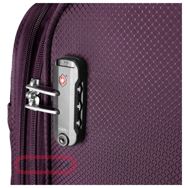 Чемодан для путешествий. Выполнен из полиэстерового материала. Обладает прочностью, устойчивостью к перепадам температур. Внутри имеет сеточный карман на молнии, эластичные компрессионные ремни на фастексах для фиксации багажа внутри чемодана. Предусмотрена выдвижная телескопическая ручка с фиксатором на 2 положения. Колеса (4 шт) из термополиуретана, пластиковые ножки на боковой части чемодана для придания устойчивости. Ручка в верхней и боковой части чемодана для удобства транспортировки в вертикальном положении. Оборудован специальным кодовым замком с функцией таможенного досмотра TSA LOCK. Размер: 35х55х20 см, объем - 31 л, вес - 2 кг.