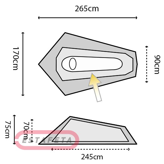 Наружный: 265 см x 170 см x 75 см