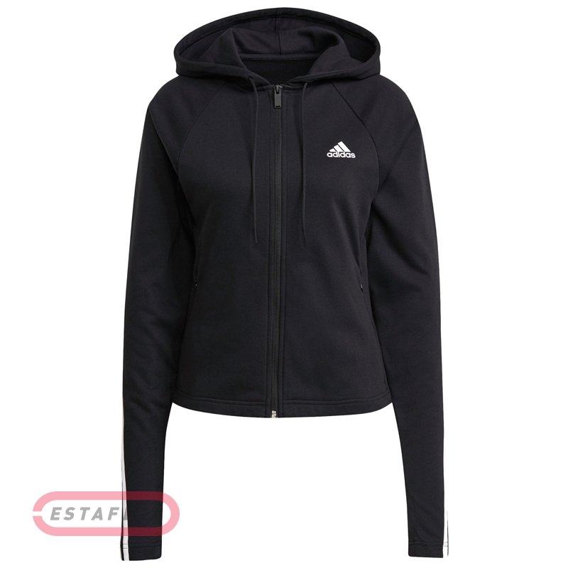 Спортивный костюм Аdidas Sli состоит из кофты на молнии и штанов. Отлично подойдет для занятий спортом, а также просто прогулок. Модель сшита из мягкого тонкого трикотажа. Кофта с капюшоном на молнии. Штаны выполнены в однотонном черном цвете с белыми полосками. Благодаря эластичному поясу они удобно сидят на теле. Трилистники на шортах и футболке подчеркивают спортивный образ.