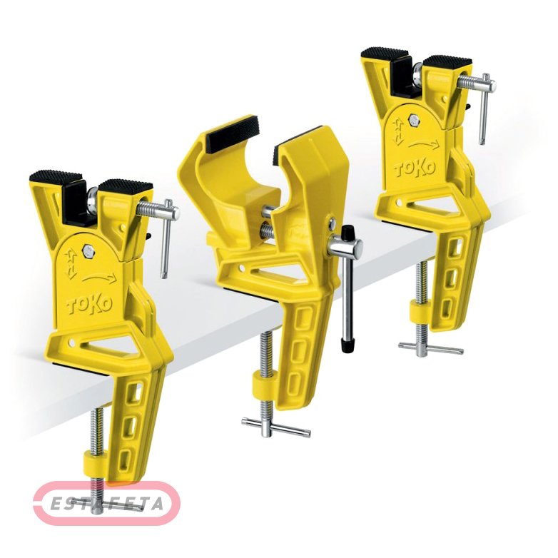 Проверенное на чемпионатах мира зажимное устройство для фиксации горных лыж. Две внешние опоры регулируются по высоте и могут быть установлены под углом до 60° для подготовки кромки в дополнение к обычному положению под углом 90°. Прочное среднее зажимное устройство с широкой зажимной поверхностью 70 мм открывается на 100 мм. Более широкие лыжи можно надежно зафиксировать, зажав крепления.