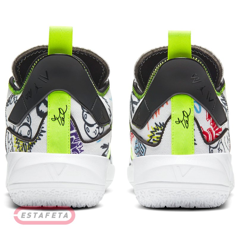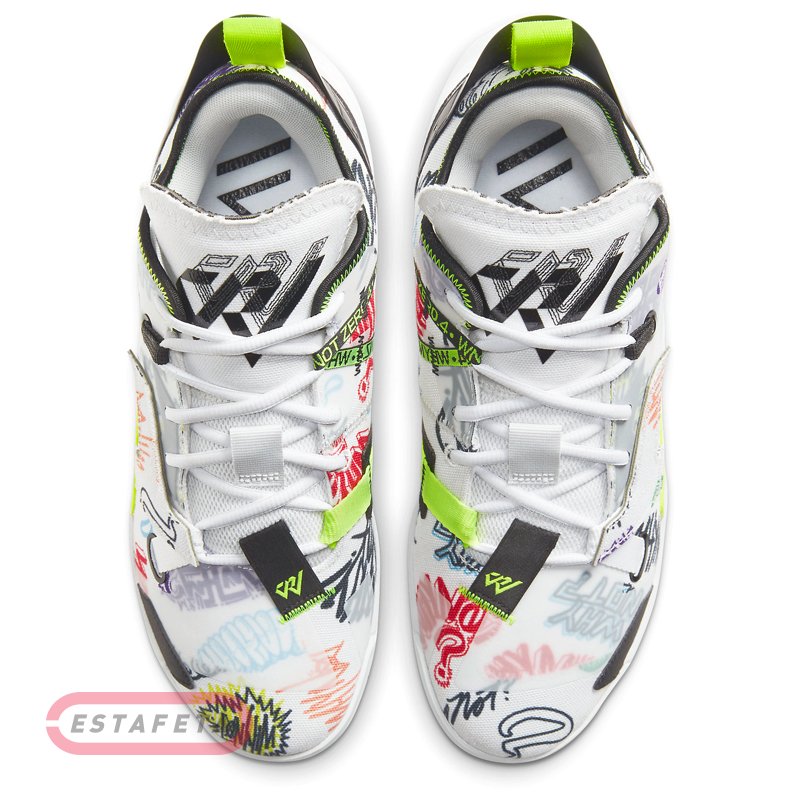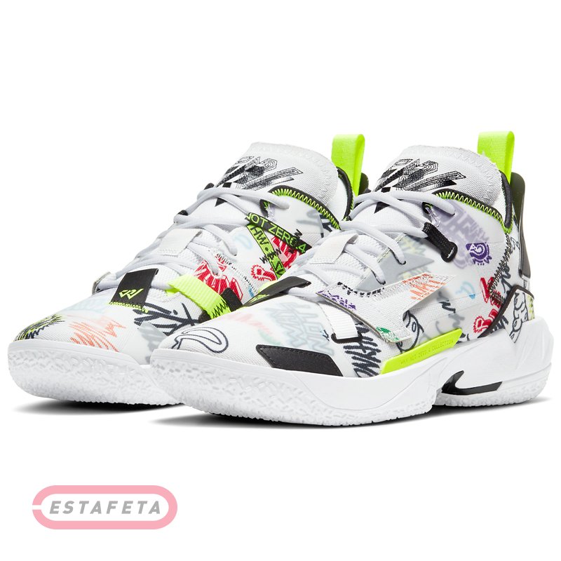 JORDAN Brand представил новую фирменную модель Рассела Уэстбрука (Russell Westbrook, Houston Rockets), названную JORDAN WHY NOT Zer0.4. «Я не считаю чем то само собой разумеющимся, что у меня есть своя именная обувь от бренда JORDAN, и я очень рад этому!», - говорит Вестбрук: «Кроссовок не только сочетает в себе великолепные технологии и стиль, но и символизирует надежду и вдохновение, он стремится вселить веру в молодежь». Скорость - не такое уж секретное оружие Рассела Уэстбрука. Он обгоняет конкурентов, набирает обороты и пробивает себе дорогу. Zer0.4 - первая модель с двойным зумом DOUBLE-STAСKED ZOOM в передней части стопы. Это сверхчувствительная система амортизации, призванная помочь ему превратить свою скорость в силу и сосредоточить атаку. Два установленных друг на друга блока Air Zoom в передней части стопы обеспечивают максимальную отзывчивость и амортизацию. Они помогают оптимизировать возврат энергии на каждом шагу. Кроссовки NIKE JORDAN WHY NOT ZER0.3 демонстрируют верх из двухслойного текстиля со вставками из сетки с для легкости и вентиляции. В средней части стопы есть прозрачный регулируемый ремешок, который отвечает за стабилизацию и фиксацию стопы, он застегивается одним движением. Вставка Air Zoom Turbo разработана специально для Уэстбрука. Она сегментирована параллельными линиями, придающими ей изогнутую форму. Каждый сегмент во время бега работает отдельно, в зависимости от полученного воздействия, чтто помогает достичь эффективной динамичной амортизации. Множество уникальных деталей подчеркивает неповторимость стиля Уэстбрука: подметка с разделением на две части для легкости, сочетание материалов, заводская этикетка с размером и прерывистые линии дизайна. Разнонаправленный рисунок протектора для лучшего сцепления. Мягкий ворот для повышенного комфорта. Укрепленный носок повышает долговечность. Расцветка PHOTON DUST (или CANVAS GRAFFITI). Именной логотип RW на стельках, язычке, пришитой спереди петле и заднем резиновом бампере. Римская цифра 4 (IV) обозначающая нумерацию модели на стельках, резиновом бампере и на мидсоли сзади.