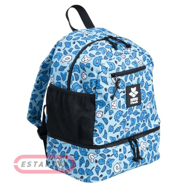 Arena Team Backpack Friends - компактный универсальный рюкзак выполнен в оригинальной яркой расцветке. Возможно использовать для школы. Большое основное отделение, боковой глубокий карман. Вместительное нижнее отделение для мокрого снаряжения, спереди карман на молнии предназначен для сухих мелких предметов. Комфорт при носке рюкзака обеспечивается набивкой задней панели и лямок рюкзака. Сетчатые вставки на всех отделениях рюкзака для вентиляции.
