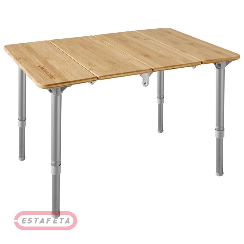 Раскладной универсальный портативный стол KingCamp BAMBOO идеально подходит как для отдыха на природе, так и для дома. Его можно установить на детской площадке, газоне, пляже, во дворе, в тренажерном зале или даже в гостиной. Стол складывается. Ножки телескопические, регулируются по высоте. Материал ножек и каркаса стола – алюминиевый сплав, что значительно облегчает вес. Защита от ультрафиолета, водостойкая бамбуковая рабочая поверхность и алюминиевая рама обеспечивают долговечность и экологичность. Портативный и легкий, его можно собрать и сложить за секунду без применения инструментов. Для хранения упакуйте стол в специальную сумку для переноски. Максимальная нагрузка: 30 кг. Размеры: 60 х 40 х 40 см. Габариты упаковки: 40 х 14 х 12 см. Вес: 3,2 кг.