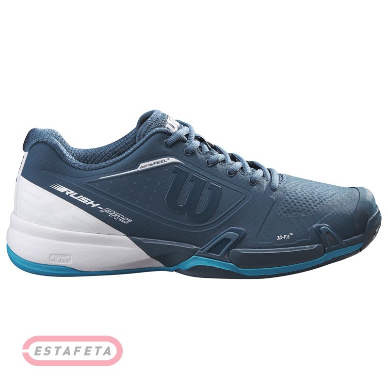Кроссовки Wilson RUSH PRO 2.5 2021 AJOLICA BL/WH/BARRIER REEF оснащены целым набором технологий. Благодаря инновационной технологии SENSIFEEL, RUSH PRO 2.5 2021 повышает комфорт без ущерба для стабильности и обеспечивает взрывную скорость. Эта обувь имеет обновленный вид, отличается прочной поддержкой свода стопы и ощущением приземленности для взрывных движений на корте. Эта модель также обеспечивает удобство для более широких стоп благодаря конструкции Generous Fit. Верх модели SENSIFEEL имеет многослойную конструкцию для повышения комфорта при сохранении превосходной поддержки, он гибкий и воздухопроницаемый, гарантирует превосходную адаптивную посадку. Технология SENSIFEEL ENDOFIT – адаптивная конструкция поддержки стопы, которая расширяется и сжимается в ответ на движения стопы спортсмена, дает непревзойденное чувство поверхности, динамичный комфорт и контроль движений. Технология 3D-FS обеспечивает беспрецедентную поддержку, увеличенное время отклика и резкое ускорение с контролируемым замедлением. Она представлена термо полиуретановыми вставками в средней части стопы для дополнительной балансировки и реактивности движений. Данная технология с удвоенной силой возвращает игроку энергию, который тот тратит на ловкие движения. Более того, технология способствует устойчивости изделия. Внутренняя стелька по технологии 3D HIGH DENSITY SOCKLINER дополняет амортизацию и чувство комфорта. Технология Pro Torque Chassis, которая делает кроссовки устойчивыми, что позволяет спортсмену уверенно двигаться по теннисному корту. В шасси Pro Torque Chassis используется дугообразная технология, обеспечивающая контроль кручения и устойчивость при резком ускорении. Промежуточная подошва DYNAMIC FIT – DF1 обеспечивает оптимальное ощущение приземления для маневренности и резкого ускорения (DF1 = HT Drop 6 мм). Технология 3D ARCH SUPPORT ™ также способствует ловкости игрока, давая возможность ему контролировать свои передвижения. R-DST + предлагает лучшую комбинацию амортизации и отскока для более динамичных характеристик. Износостойкая гибкая подошва имеет подметку DURALAST с особым зигзагообразным рисунком, что делает кроссовки устойчивыми к истиранию и гарантирует надежное сцепление с поверхностью корта. DURALAST состоит из высокоплотной, исключительно прочной резиновой смеси, обеспечивающей стойкость к истиранию и максимальное сцепление на всех поверхностях. Вставки Medial Drag Pad обеспечивают дополнительную прочность и защиту. Классическая шнуровка отлично фиксирует посадку. Усиление задника и носка продлевает срок службы обуви и защищает стопу от травмирования. Конструкция Generous Fit (D) лучше подходит для более широкой стопы для более удобной посадки. Разработаны для наилучшей работы на всех видах покрытия корта. Лого Wilson на боковых сторонах кроссовка.