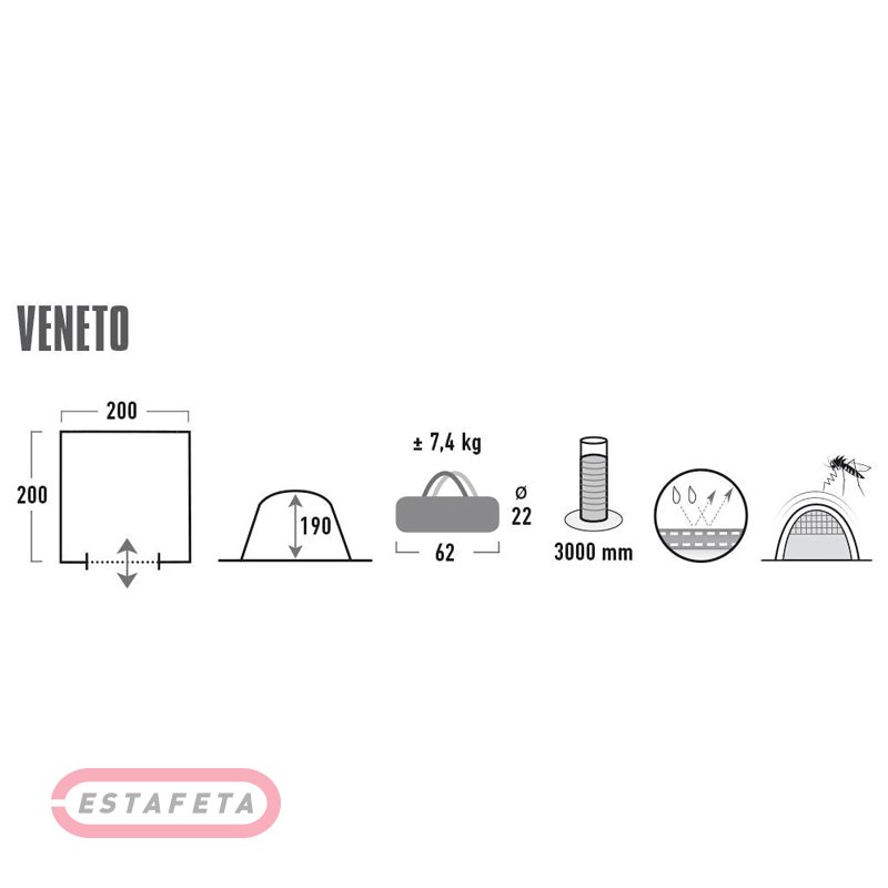 Павильон High Peak Veneto Light grey/Dark grey/Blue (14026) можно использовать как шатер для дачи, летней столовой, беседки. Большие окна с защитной шторкой со всех сторон, вентиляционное окно с москитной сеткой, простая и быстрая установка. При закрытых окнах шатер отлично защитит от дождя и ветра. Конструкция: однослойная. Усиленные углы из ABS пластика. Материал покрытия: 150D Hypertex Polyester, PU покрытие 3000 мм в.ст. Полиуретановое покрытие обеспечивает водонепроницаемость ткани. Проклеенные швы с усиленной прочностью на разрыв. Материал дна: 100% Polyethylene (PE), герметичные, проклеенные швы с усиленной прочностью на разрыв. Каркас: дуги из стекловолокна (fiberglass), 11 мм / стальные опорные стойки, 19 мм. Комплектация: павильон, стойки, дуги, колышки, оттяжки, сумка-чехол для транспортировки, инструкция. Габариты упаковки: 62 х Ø22 см. Габариты: 200 х 200 х 190 см. Вес: 7,4 кг.