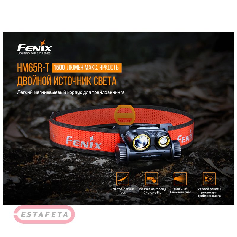 Налобный фонарь Fenix HM65R-T дает яркость до 1500 люмен, работая сразу с двумя белыми диодами, дальность действия – 170 метров. Свет получается благодаря наличию двух диодов, доступно шесть режимов дальнего и ближнего освещения. Водонепроницаемый и защищённый от повреждений фонарь можно применять в разных видах активного отдыха, питание за счёт аккумулятора форм-фактора 18650. Корпус фонаря сделан из магния, и эффективно предохранён как от повреждений, так и от воздействия факторов среды. Предусмотрена степень водонепроницаемости корпуса на уровне IP68. Этот мощный и прочный прибор перенесёт падение с высоты в два метра.