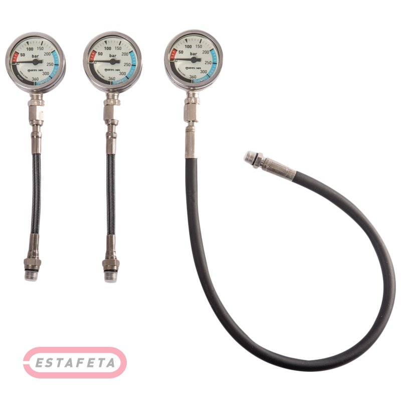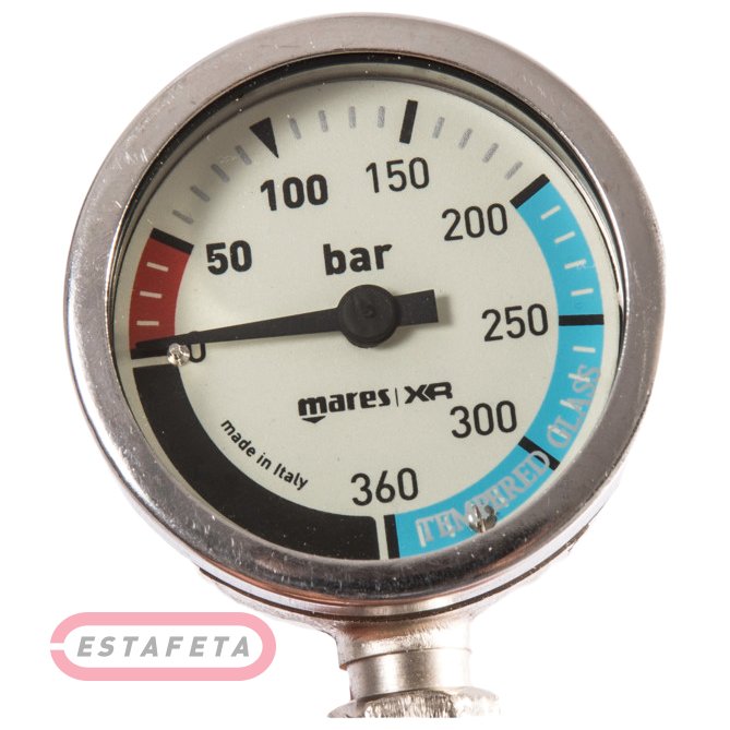 Манометр для дайвинга в металлическом корпусе с закаленным стеклом, который подходит как для технического, так и для любительского дайвинга. Устройство легко читается и имеет флуоресцентную основу для удобства чтения при ночных погружениях или в условиях ограниченной видимости. Характеристики: диапазон 0-360 бар, 0-5000 фунтов на кв. дюйм. Резиновый шланг 56 см или черный шланг Miflex длиной 15 см. Воздух или 100% кислород (чистый кислород). Сертифицирован согласно EN 250. Трубка Бурдона из меди и бериллия, не теряет калибровки даже при самых сильных ударах. Совместимость с DIR поставляется в версиях со шлангом Miflex 15 см или обычным шлангом 56 см.