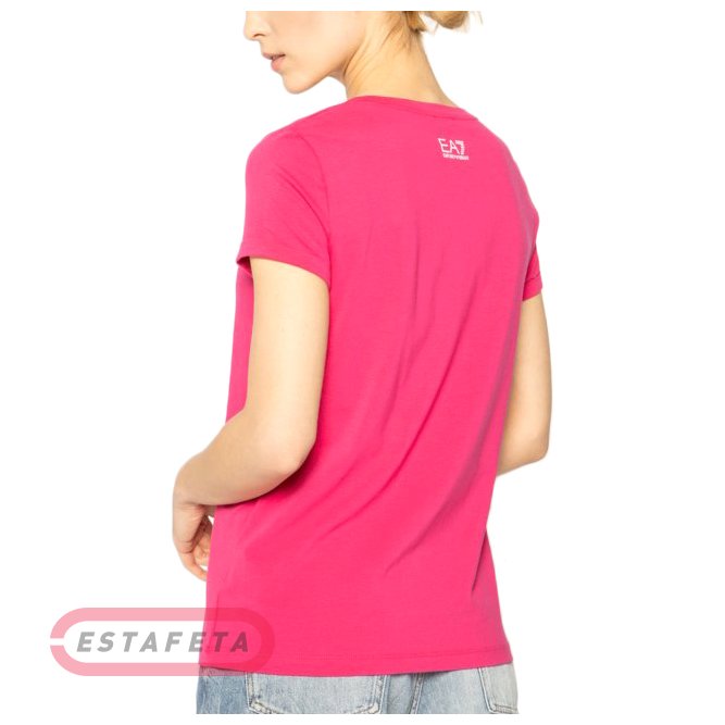 Женская футболка выполнена из высококачественного трикотажа. Данная модель имеет свободный крой, выразительный принт, а также лого ЕА7.
