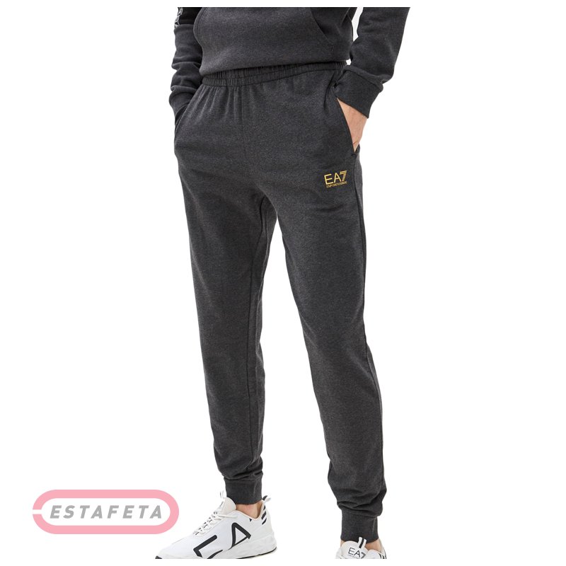 Мужские спортивные брюки выполнены из высококачественного хлопкового трикотажа. Данная модель имеет широкий регулируемый пояс на кулиске, комфортную посадку, карманы для рук, трикотажные манжеты, а также лого ЕА7.