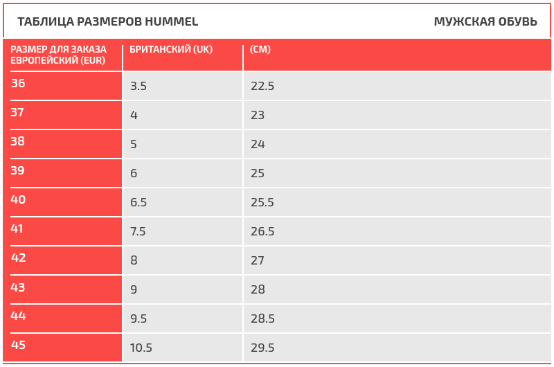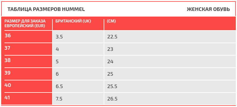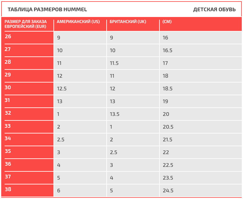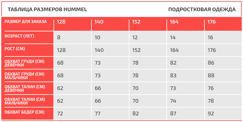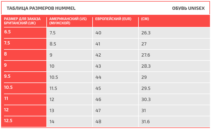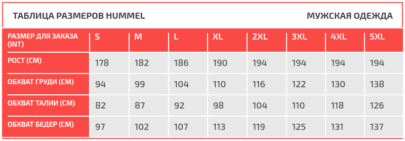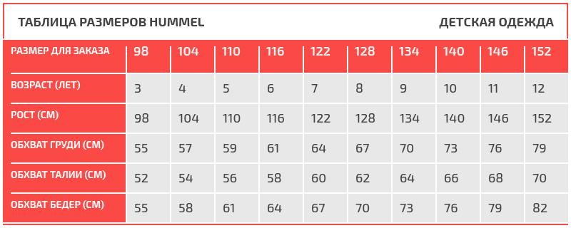 Таблица размеров Hummel