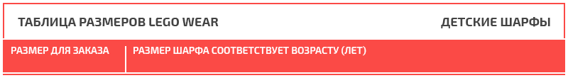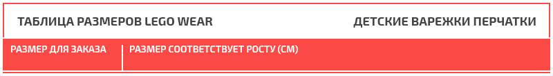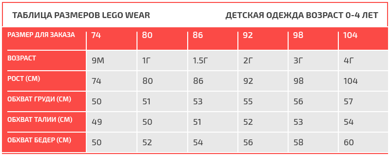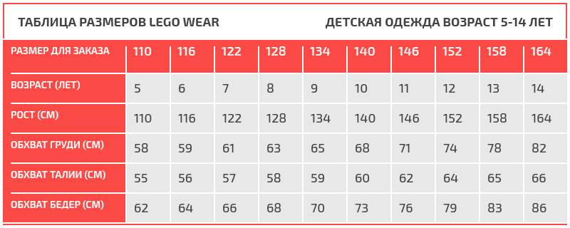 Таблица размеров LEGO Wear