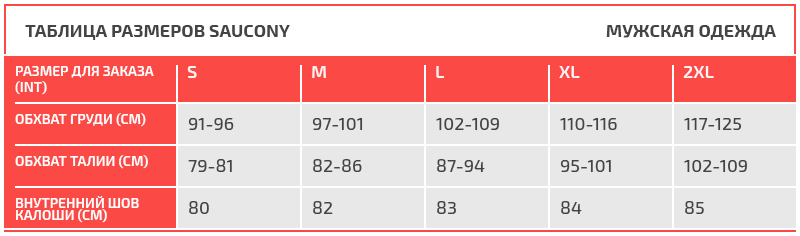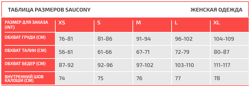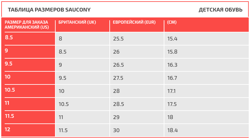 Таблица размеров Saucony