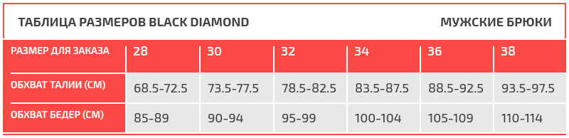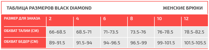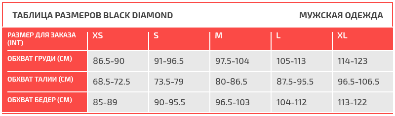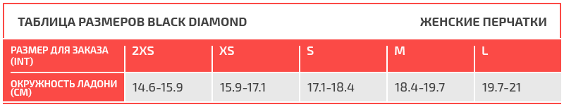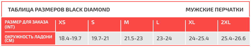 Таблица размеров Black Diamond