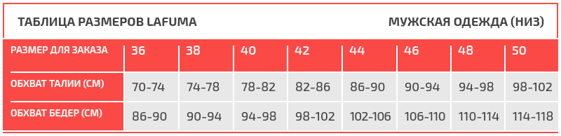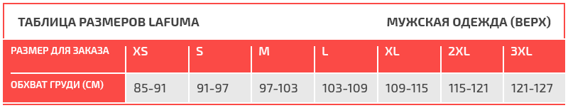 Таблица размеров Lafuma