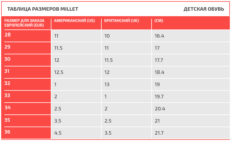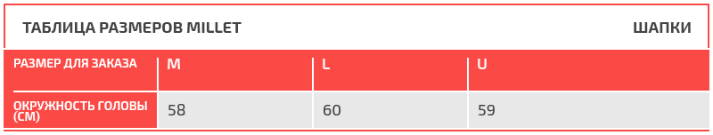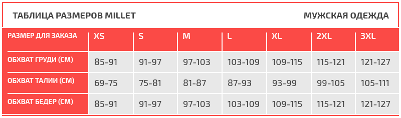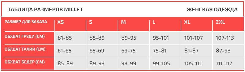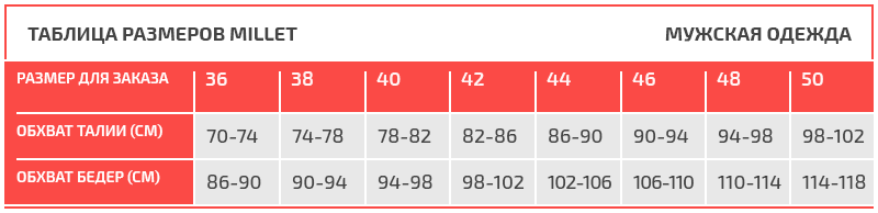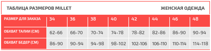 Таблица размеров Millet