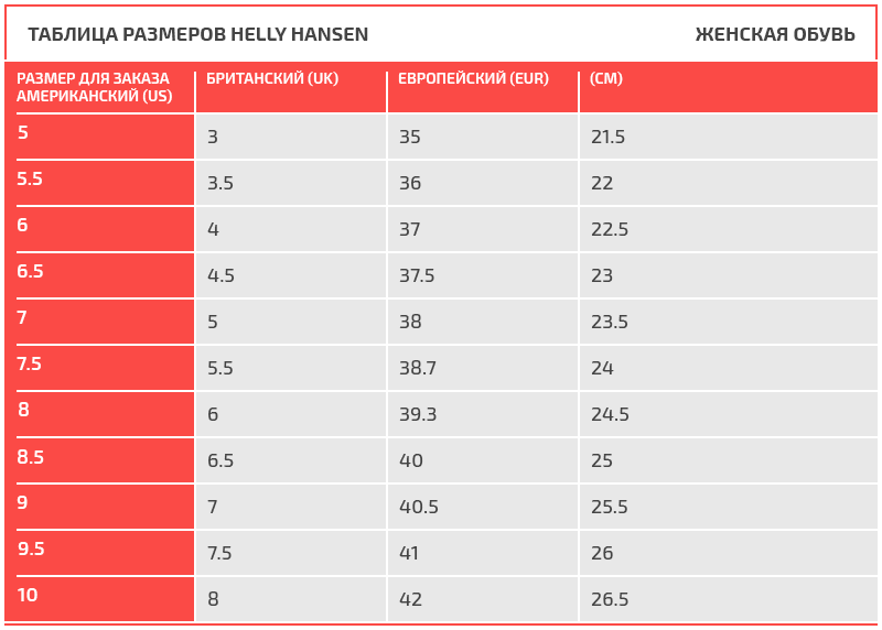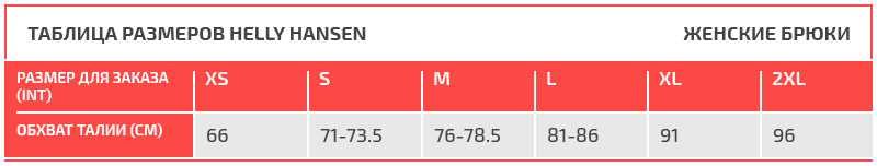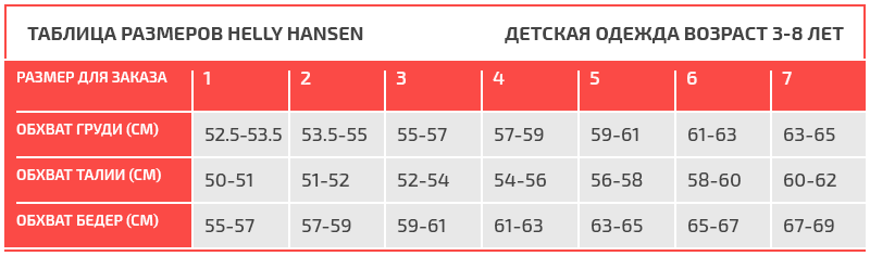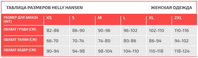 Таблица размеров Helly Hansen