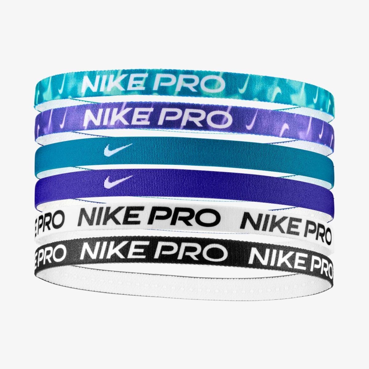 NIKE FLEX CLASSIC HEADBANDS 6PK PRINTED GREEN ABYSS/COURT PURPLE/BLACK OSFM —