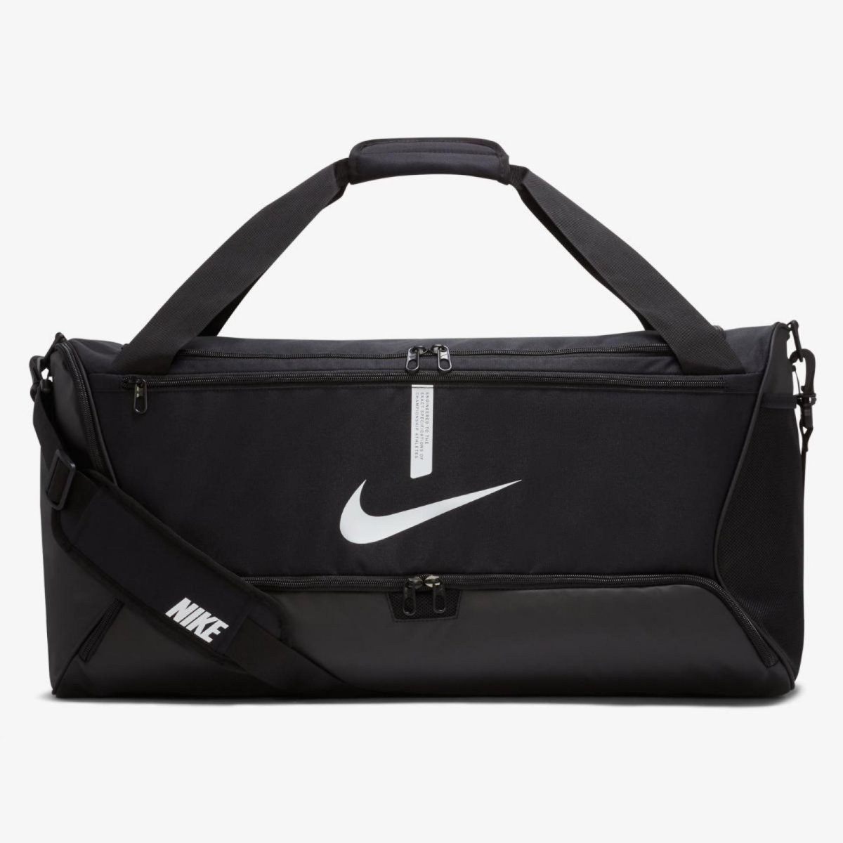 Сумка-дафл Nike Academy Team це міцна конструкція, створена для того, щоб речі завжди були в порядку. У спеціальних відділеннях є місце для м'яча, черевиків та одягу, а кілька ременів дозволяють зручно носити спорядження у дорозі.