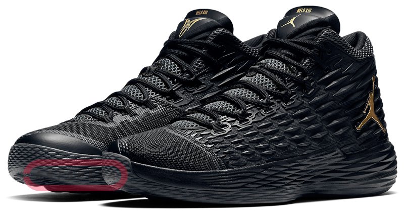 NIKE JORDAN Brand представляет новую модель из серии, посвященной звезде американского баскетбола Carmelo Anthony, обладателю многих титулов, чемпиону Олимпийских игр 2008 года и 2012 в составе сборной США. JORDAN MELO M13 – кроссовки, в которых Carmelo Anthony будет играть на протяжении всего сезона. Модель имеет легкий, гибкий верх, который обеспечивает поддержку, комфорт и зональную защиту, а также гибкость, необходимую для быстрых маневров, и усиленную поддержку лодыжки, необходимую для молниеносных jab step и взрывных игровых выпадов. Агрессивная и одновременно изящная алмазоподобная текстура из высокопрочного материала Kurim привносит новую эстетику и оптимальную стабильность. Технология Flight Web гарантирует надежную фиксацию и обеспечивает динамическую блокировку. Промежуточная подошва модели выполнена из пеноматериала Phylon, эффективно поглощающего ударные нагрузки. Технология FlightSpeed максимизирует отзывчивость и амортизацию и придает мощный толчок для взрывного старта, а также оптимизирует возврат энергии в каждый следующий шаг. Благодаря низкопрофильному амортизационному блоку Nike Zoom Air спортсмену стало проще сделать финальный рывок и оттолкнуться еще сильнее. Усиленный пяточный стакан добавляет стабильности стопе, а боковые литые выступы служат защитой от боковых смещений, высокая шнуровка плотно фиксирует кроссовок по ноге. Прочная резиновая подошва с цепким протектором обеспечивает сцепление и стабильность при резкой смене направления движения. Золотистое лого Jumpman на внешней боковой стороне кроссовка и верхней части язычка, персональное лого Carmelo Anthony в области задника.