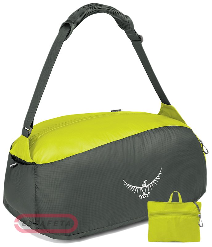 Ультралегкая и компактная спортивная сумка Osprey Ultralight Stuff Duffel может удобно влезть в Ваш карман в свернутом состоянии. Модель очень легкая, ведь ее вес составляет всего 180 г. Вместимость – 30 л, размеры - 23 х 56 х 30 см. Сумка имеет одно главное отделение, которое закрывается на удобную молнию. Сумку удобно и приятно будет носить на плече благодаря регулируемому плечевому ремню с пенной подложкой. Есть также удобные боковые карманы, один из которых застегивается на молнию, а другой является прорезным.
