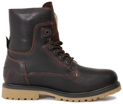 Зимние ботинки «авиаторы» Wrangler AVIATOR с меховой подкладкой, протекторной подошвой и стильным ретро дизайном станут беспроигрышным решением для городской носки и туризма. Модель порадует Вас неповторимым, узнаваемым силуэтом в урбанистическом стиле, который позволяет составить аутентичный образ. Верх изготовлен из прочной натуральной кожи с влагоотталкивающей пропиткой и оснащен прочными, тщательно проработанными вощеной нитью швами. Всепогодные, и всегда актуальные ботинки будет великолепно смотреться в сочетании с Вашей любимой одеждой. Уютная меховая подкладка согреет в холода, а текстурированная, надежная шнуровка на нержавеющих люверсах гарантирует превосходную фиксацию стопы. Невысокий каблук гасит удар при ходьбе, снижая давление на позвоночник и суставы. Накладка на заднике добавляет конструкции долговечности и устойчивости. Обувь придется по душе поклонникам брутальной, прогрессивной обуви, которая подчеркивает индивидуальность стиля.