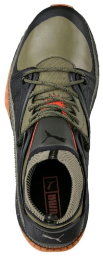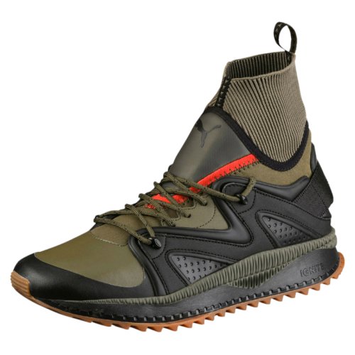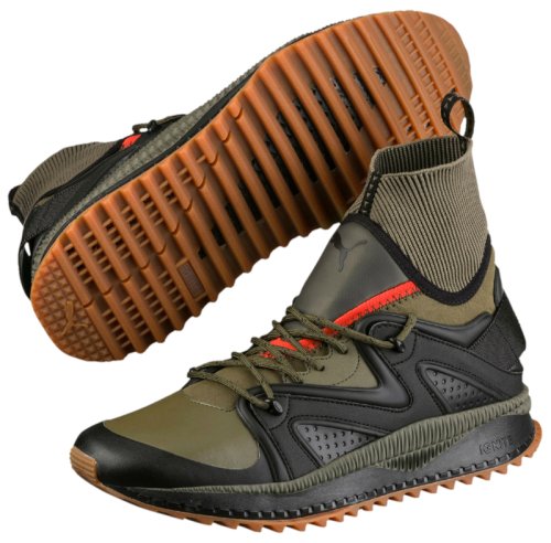 Кроссовки для бега Puma TSUGI Kori - это модель с прогрессивным дизайном и атмосферостойкой конструкцией. Верх из водонепроницаемых материалов соединен с неопреновым ботином bootie, его конструкция вдохновлена силуэтом Blaze of Glory. Высокий профиль, теплая подкладка, высокий ребристый трикотажный ворот и специально сконструированная двухслойная подошва из инновационного полиуретанового материала IGNITE делает модель идеальным выбором для холодного сезона. Технология IGNITE обеспечивает комфорт с каждым шагом и оптимальные амортизационные свойства. Прочная резиновая подошва обеспечивает необходимую тягу, независимо от типа поверхности. Брендинг PUMA Cat Logo на язычке и заднике модели.